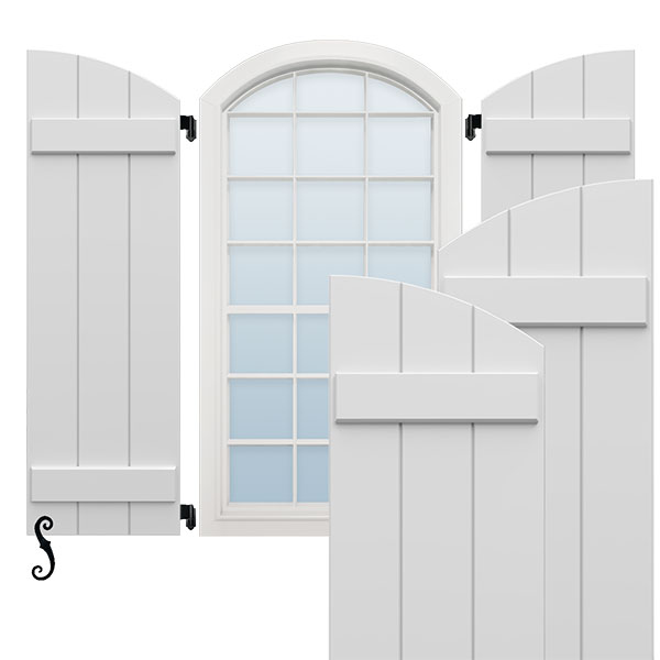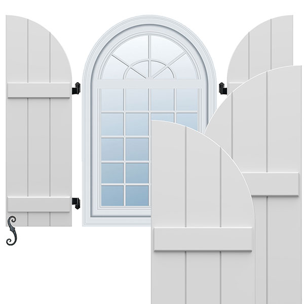 EnduraCore Composite, Two Board Arch Top Joined Board-n-Batten Shutters (Per Pair - Hardware Not Included)